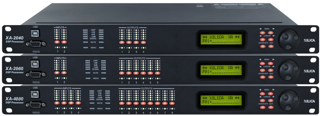 The XA Series products offer 3 I / O combination options, 2 x 4,2 x 6 and 4 x 8, providing a cost-effective footprint for a variety of channel counts. The XA products feature XLR line level inputs and outputs, but do not utilize AES / EBU or Mic/Line switchable inputs. Additionally, advanced DSP processing algorithms such as FIR, GEQ and compressors have been removed to provide a more affordable entry-level solution.